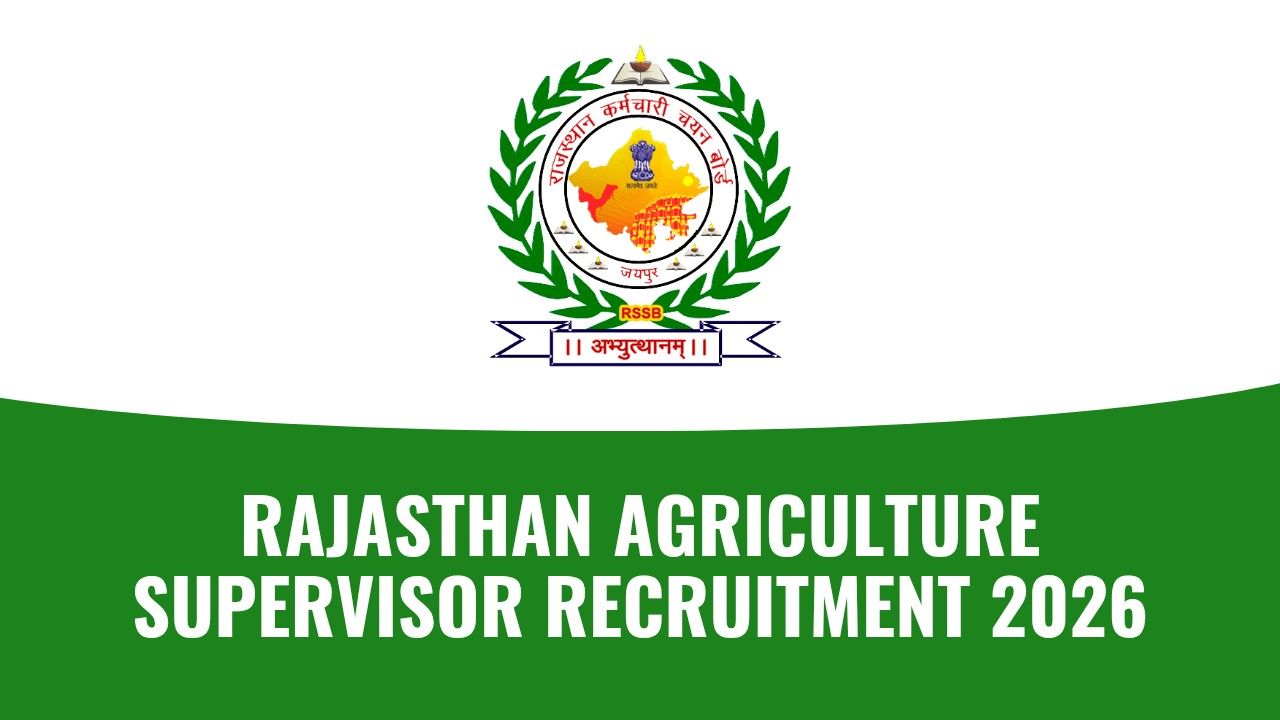 Rajasthan Agriculture Supervisor Recruitment 2026 | Apply By February 11