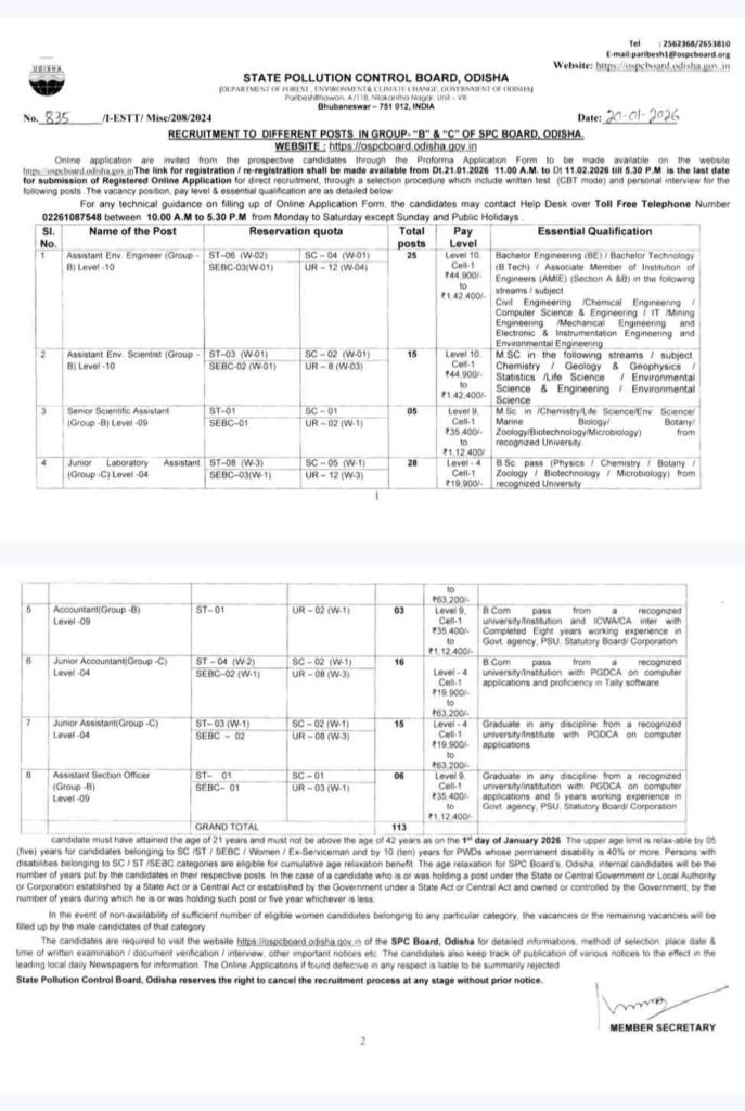 The Odisha State Population Control Board has officially released a notification on January 20, 2026, for recruitment to various Group B and Group C posts and has invited eligible candidates to apply through their official web-portal.