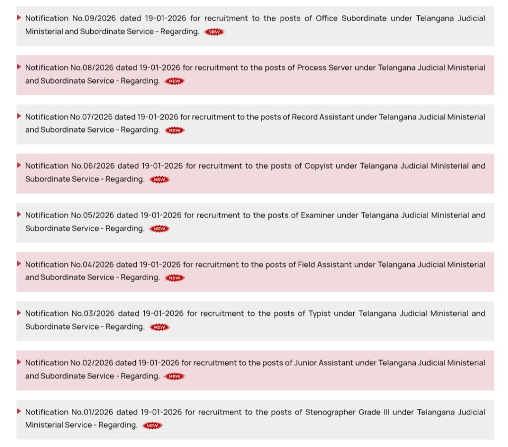 The Telangana High Court has officially released the notification for recruitment to various posts under the Telangana Judicial Ministerial and Subordinate Service on January 19, 2026, and has invited applications from eligible candidates.